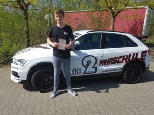 Schon die zweite Fahrerlaubnis, die Sebastian in unserer Fahrschule erworben hat. Vor einem Jahr meldete er sich für die Klasse A1 an und absolvierte die Ausbildung genau so souverän, wie seine aktuelle Klasse BF17. Super! Wir sind sehr stolz auf dich! Bis zur nächsten Klasse A2 wünschen wir dir allzeit gute Fahrt, Sebastian!